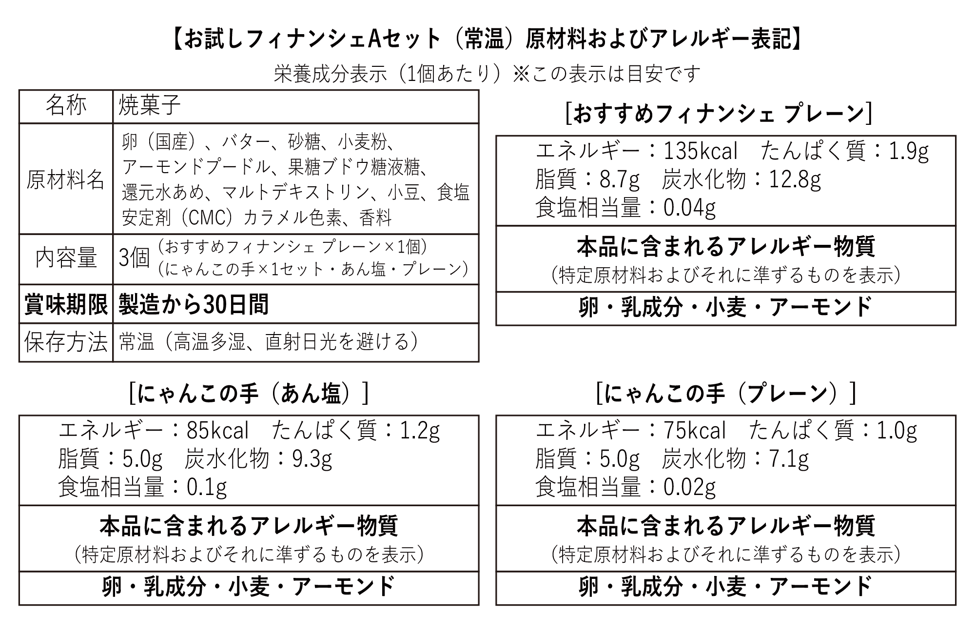 【送料無料】王道と人気者をまずはお試し。「お試しフィナンシェAセット」
